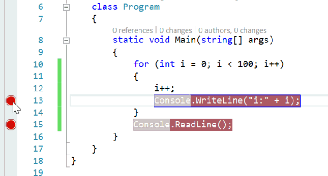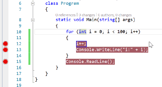 Esto es genial, podemos ver a la izquierda de la línea depurada, la cantidad de veces que el depurador ha pasado por esta línea. En un loop se entiende muy bien la idea.