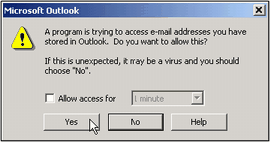 Hace un tiempo comentaba como durante el desarrollo de FlowRuler, Microsoft decidió "securizar" un poco más el modelo de objetos de Outlook y casi nos arruina el proyecto. Cuando una aplicación que utilizaba este modelo de objetos, aparecía el siguiente mensaje de Outlook.