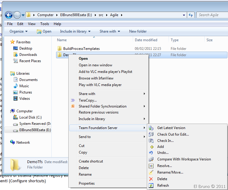 Una de las soluciones, es instalar las Team Foundation Server Power Tools para Team Foundation Server 2010 para Visual Studio 2010 y a partir de este momento, podremos ver en Windows Explorer nuevas opciones que nos permiten trabajar directamente contra Team Foundation Server.