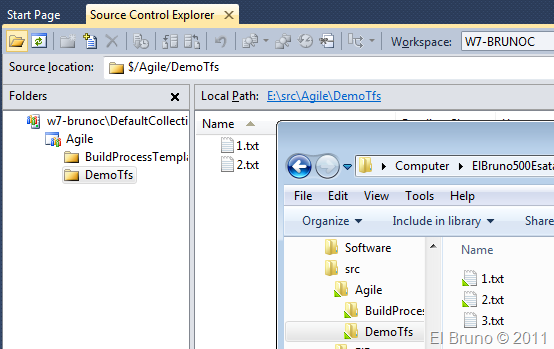 Esta extensión se puede descargar desde Visual Studio Gallery en http://visualstudiogallery.msdn.microsoft.com/c255a1e4-04ba-4f68-8f4e-cd473d6b971f y si vemos el ejemplo de la carpeta que mostré ayer veremos algo similar a lo siguiente, donde se puede ver como el archivo 3.txt no está asociado al source control