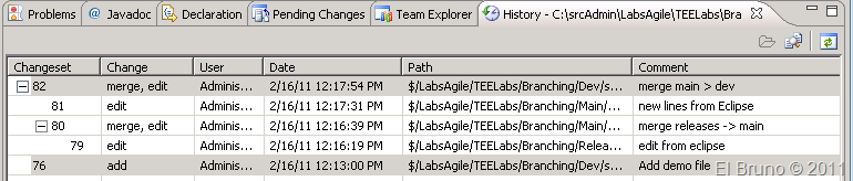 Bueno por ahora sirve como referencia para ver que la mayoría de las capacidades del Team Explorer de Visual Studio 2010 han sido implementadas en Eclipse. En los próximos días, un poco más de detalle al respecto y con suerte Builds, JUnit, etc.