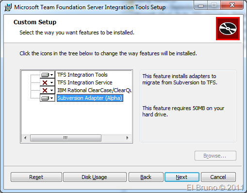 1. En primer lugar, debemos instalar las herramientas de integración. Es importante seleccionar el adaptador de SubVersion (en estado Alpha), para que tengamos acceso al mismo al momento de realizar la migración.