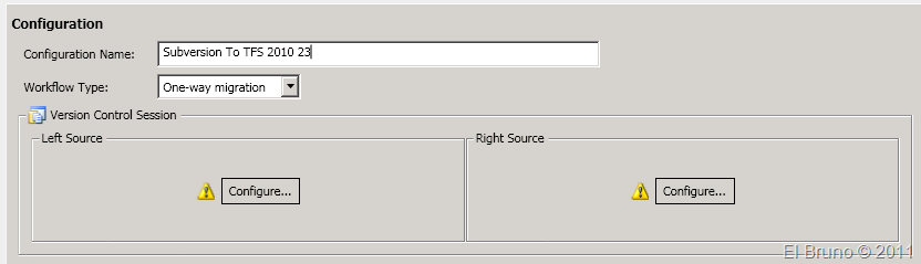4. La creación de un nuevo proyecto requiere una plantilla inicial, seleccionamos el archivo [C:\Program Files\Microsoft Team Foundation Server Integration Tools\Configurations\Subversion\Subversion_to_TFS.xml] para crear el nuevo proyecto. En este punto podremos ver el formulario de configuración del proceso de migración. Pera este ejemplo el nombre del proceso será [Subversion to TFS 2010 23]