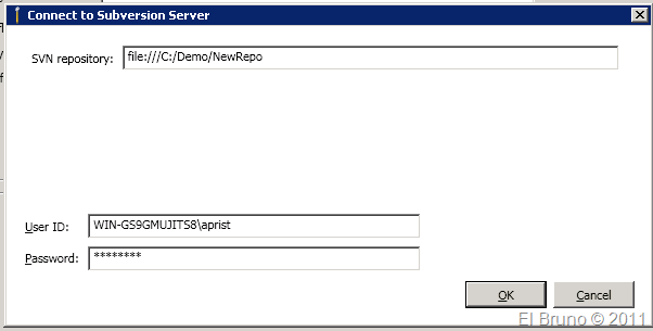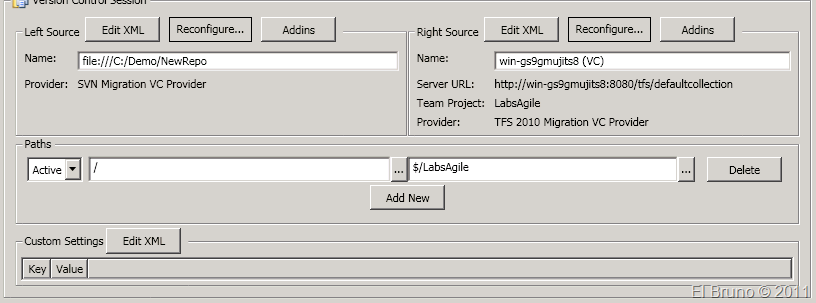 5. Editamos la opción [Left Source] y en la misma configuramos los datos de acceso a nuestro repositorio de SubVersion. Para este ejemplo, utilizo el acceso por file system, pero puede realizarse por cualquiera de los protocolos que soporta SubVersion.