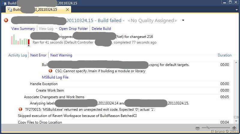 me dejo un apunte relacionado con un error que me he encontrado un par de veces en definiciones de Builds para Team Foundation Server 2010. Todavía no tengo claro si es un bug de Visual Studio 2010 o un error mío de definición de proyectos, aunque la tendencia es claramente para la 2da opción.