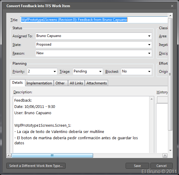 Ahora bien, un detalle interesante con los prototipos es que es posible exportar el feedback de los mismo y luego convertirlos en material de Team Foundation Server 2010, para trabajar con los mismos de manera organizada. El siguiente tutorial muestra como hacer esto en un par de pasos.