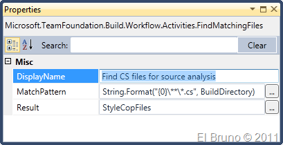• MatchPattern > String.Format(“{0}\**\*.cs”, BuildDirectory)
