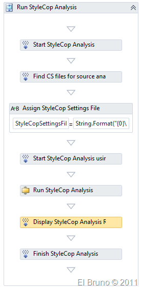 4. Para el problema de la referencia a StyleCop 4.4.014 aca dejo una soluición para utilizar la version 4.5.0.25 y no tener que hacer un downgrade. http://ericdelahaye.wordpress.com/2011/07/19/ejecutar-stylecop-4-5-en-el-workflow-de-team-foundation-build/