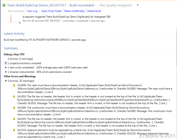 19. Lanzamos la build y ya podremos ver como en el resultado de la misma se incluye la ejecución del proceso de análisis de código con StyleCop.