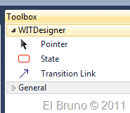 4. Activamos la ToolBox de Visual Studio 2010 y en la misma vemos que tenemos elementos de tipo Estado y Transition para trabajar sobre la definición del WorkFlow.