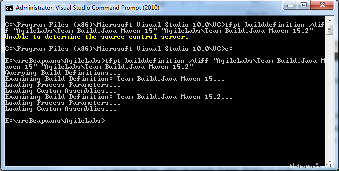 8: E:\srcBcapuano\AgileLabs>;tfpt builddefinition /diff