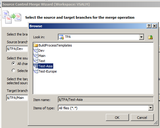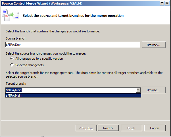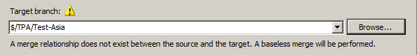 una de los casos más comunes con los que te encuentras cuando trabajas con Branches, es la necesidad de hacer un MERGE entre dos ramas que no estén relacionadas entre sí. Esto en Team Foundation Server se lo conoce como Baseless Merge y es posible realizarlo desde la línea de comandos pero no desde el IDE.