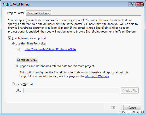 el IDE de Visual Studio 11 sigue siendo una herramienta de Desktop muy potente. Si bien proyectos como Roslyn prometen sacar parte de carga de trabajo al IDE, la idea de un editor de código fuente completo, creo que sigue siendo 100% desktop. Pero parece que no pasa lo mismo con la nueva versión de Team Foundation 11. Si le damos un vistazo a las opciones de un Team Project nos encontraremos con la siguiente imagen.