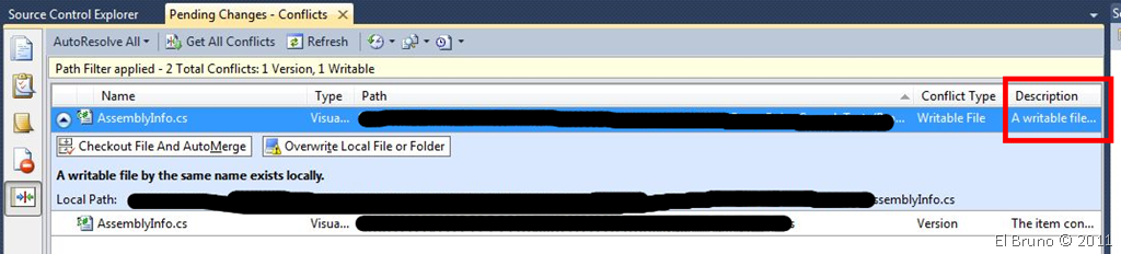 En la imagen anterior puedes ver, el detalle del porqué de esta acción y que quede bastante claro > esto es uno de los peores defectos de Team Foundation Server. La forma de trabajo utilizando la propiedad ReadOnly de los archivos es algo que Microsoft viene realizando desde Visual Source Safe y no será hasta Team Foundation 11 que se cambiará este modelo de trabajo.