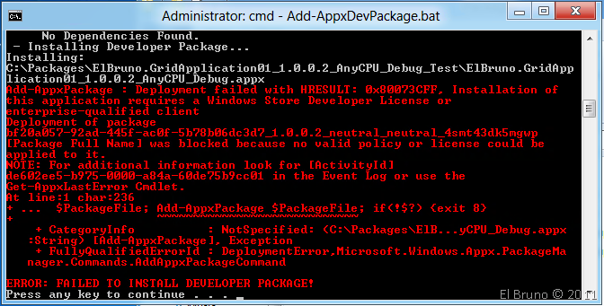 ayer vimos como empaquetar y desplegar una aplicación creada con Visual Studio 11 en un Windows 8. Lo que el bruno no te contó (porque soy un tipo jodido) es que si quieres desplegar una aplicación en un Windows 8 que no tenga instalado Visual Studio 11 te vas a encontrar con el siguiente error