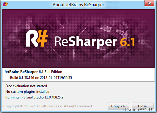hace un tiempo que he dejado de utilizar Visual Studio 2010 para mis desarrollos del día a día. Salvo cuestiones puntuales como desarrollos para Windows Phone o cosas raras, Visual Studio 11 es mi main dev tool. Ahora bien, desde hace ya bastante tiempo, Visual Studio no es Visual Studio si no tienes ReSharper y claro, los chicos de JetBrains no podían quedarse atrás y ya han liberado una versión que soporta el IDE de VS11. Después de lanzar la pregunta por twitter, la respuesta de @hhariri fue inmediata >> http://blogs.jetbrains.com/dotnet/2011/11/resharper-61-eap-for-visual-studio-2011/