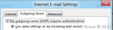 Presionando la opción More Settings, en la pestaña “Outgoing Server” debemos seleccionar la opción “My outgoing server (SMTP) requires authentication”,