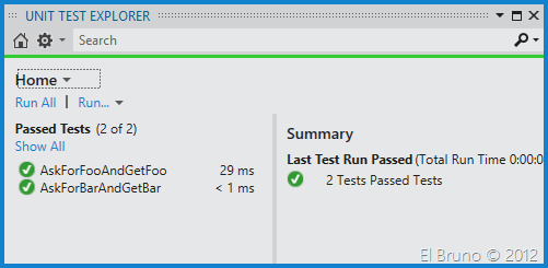 Para la ejecución de las pruebas unitarias, tenemos ahora un nuevo panel en Visual Studio 11 llamado “Unit Test Explorer”. Y he aquí un detalle interesante sobre el funcionamiento del mismo.