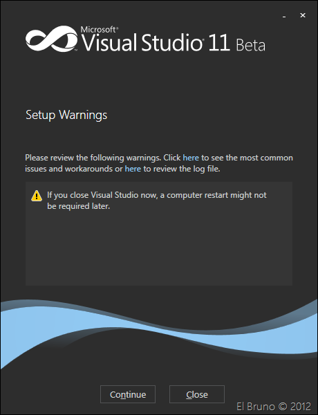 Pues bien, una ves descargado el archivo (son casi 17 MB), tienes que lanzar el mismo. Obviamente la recomendación es con Visual Studio 11 cerrado. En el caso de que no quieras cerrar el IDE, pues tendrás que reiniciar Windows.