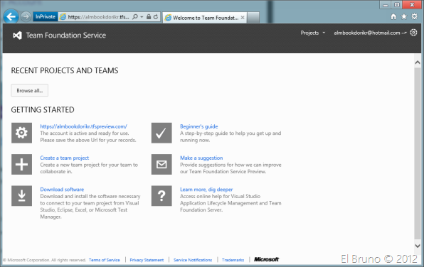 7. En poco tiempo tendremos nuestra cuenta creada y ya podremos crear un Team Project, acceder a los tutoriales, etc.