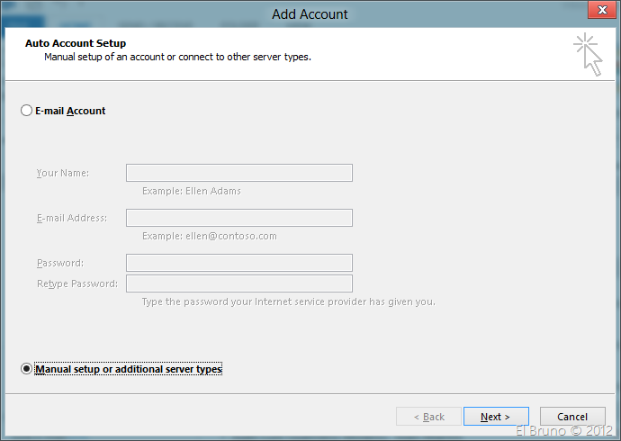 hoy toca un pequeño truco para poder utilizar nuestras cuentas de Microsoft Account con Outlook 2013 (@hotmail, @msn, @live, etc). Si has probado agregar directamente alguna de estas cuentas verás que las mismas no se resuelven en el asistente para agregar cuentas.