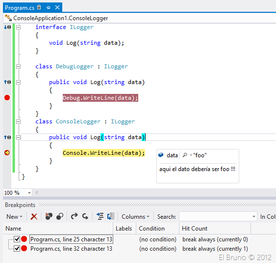Veamos un ejemplo. Supongamos que estoy trabajando con una aplicación de consola con el siguiente código: