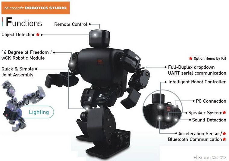 Entre las cosas pendientes, tenemos una demo de Robotics Studio con Kinect, y claro … a alguien se le ocurrió meter a RoboBuilder en el medio. Si no conoces a RoboBuilder, es como una especie de Lego con esteroides, ya que consiste en un set de construcción que te permite armar un humanoide, un perro, y una especie de araña de Halo4, y otras formas más con varios sensores y servomotores. Luego, obviamente puedes programar y controlar los mismos usando un software propietario.