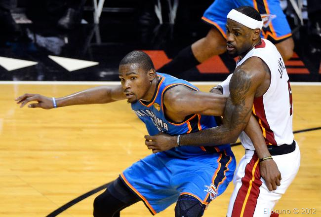 Hace un par de años ya puse una foto del gran LeBron James como MVP, y como ha repetido y por fin ha logado su anillo con Miami Heat, este año cambio un poco los papeles. Le dejo lugar al crack de Kevin Durant. KD no se impone tanto como como LeBron, aunque yo tuve la suerte de verlo jugar cuando era un rookie con los Seattle SuperSonics y la verdad es que era impresionante. Solo decir que siendo su primera temporada promedió unos 20 puntos ![]()