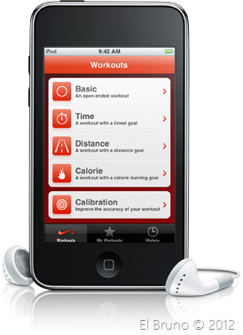 En la versión actual, que se ejecuta sobre iOS 6, es una app más dentro de un iPhone o iPod. En mi caso no uso un iPhone, tengo un iPod Touch (4ta gen) que si bien tiene más golpes que un boxeador con hipo, me ha acompañado los últimos 2 años. Esta versión en especial, también es muy buena ya que no requiere un sensor en la zapatilla, aprovechando el hw del iPod realiza los cálculos de los tiempos y la distancia recorrida.