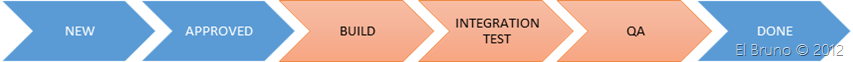 Aplicando los cambios del nuevo proceso, veremos que si bien no cambiamos el estado del WorkItem, si podemos cambiar la posición del mismo en las columnas del tablero. En este caso he renombrado una columna por Build y agregado 2 nuevas: Integration Test y QA.