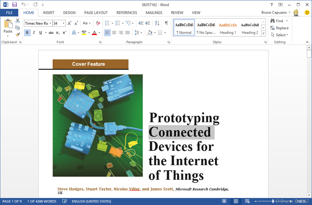 Hoy he descubierto una alternativa utilizando Word 2013. Cuando estaba por abrir un archivo DOCX, me equivoqué y seleccioné el archivo [06357162.pdf]. Este archivo es un PDF creado por el equipo de Microsoft Research sobre Prototyping Connected Devices for the Internet of Things (devices conectados everywhere, para esto Windows 8 Embedded, ¿no?)