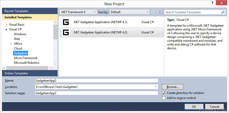 2. Creamos un nuevo proyecto del tipo Visual C# // Gadgeteer // .Net Gadgeteer Appication (NETMF 4.2)