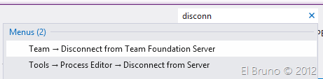 La intuición me llevó a darle todas las vueltas al Team Explorer para buscar el “Disconnect”, sin embargo no estaba allí. Al final el Quick Launch me salvó, solo escribir “disconn” y allí estaba: