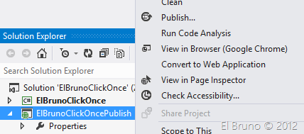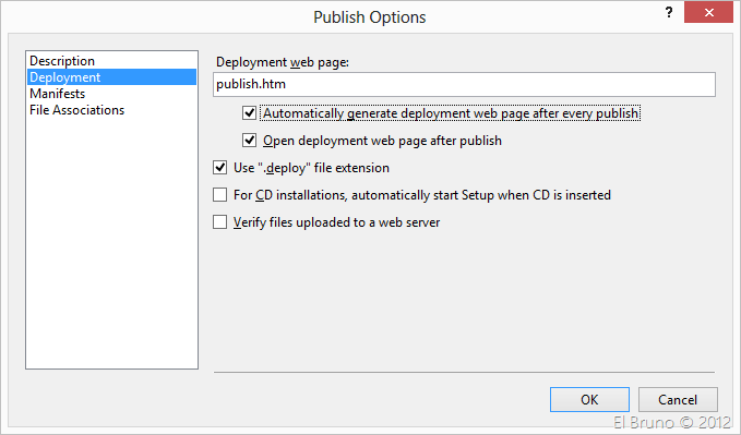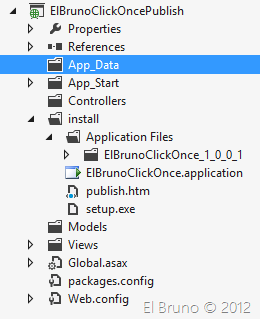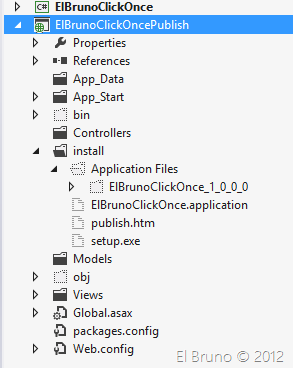 Publishing Folder: ..\ElBrunoClickOncePublish\install\ (Esta configuración publica los archivos de ClickOnce directamente al directorio de proyecto del website)