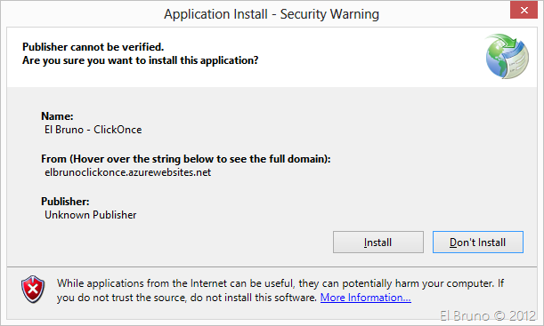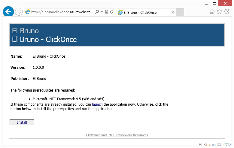 Installation Folder: http://elbrunoclickonce.azurewebsites.net/install/