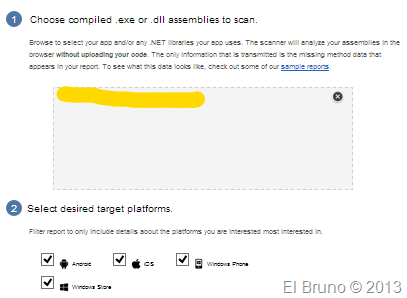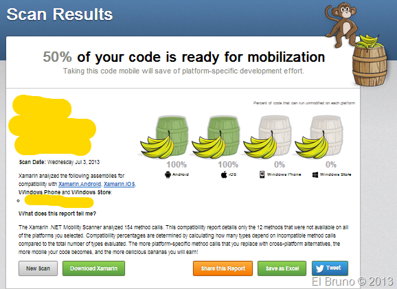 listo! En pocos segundos tienes el resultado driven by bananas. En el análisis de ejemplo veo que mi ensamblado es 100% compatible con Android e iOS pero no con WP y Win8 (resultado no esperado por cierto)