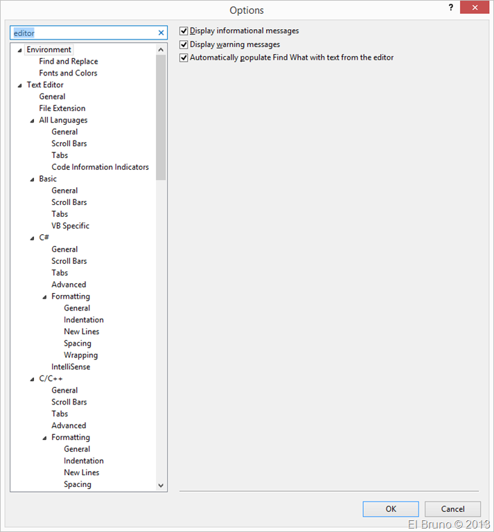 menuda sorpresa me llevo cuando en Visual Studio 2013 voy a Tools // Options, veo que … tenemos SEARCH !!! y además RESIZE !!!