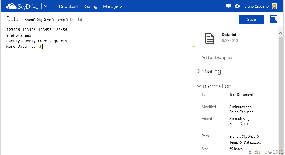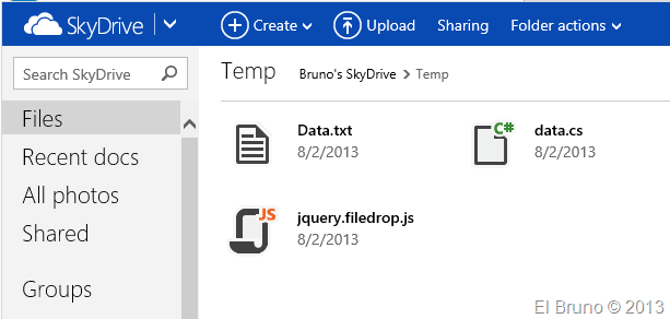 Y ahora, el equipo de producto de SkyDrive ha dedidico atacar a otro grande > a TFS !!! Desde hace unos días, además de los editores web de office, en SkyDrive hay integrados editores de texto que son bastante molones. Veamos por ejemplo lo que sucede cuando subimos un archivo de texto (txt)
