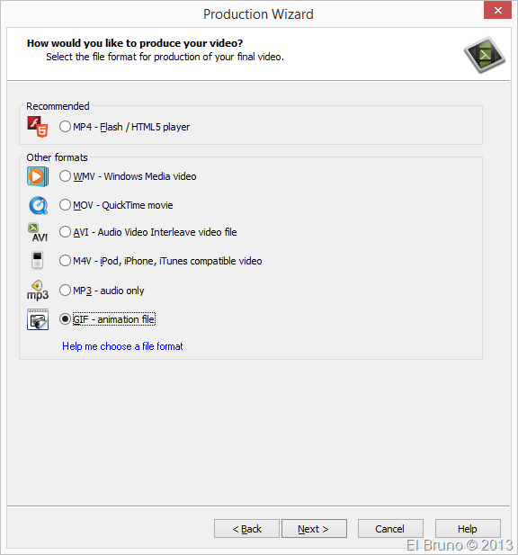 en mis últimos posts, cuando necesitaba mostrar una feature del IDE de Visual Studio 2013, opté por poner GIFs animados en lugar de videos. Esto me la de fábrica Camtasia Studio, luego de procesar un video en las opciones de generar está la opción de GIF
