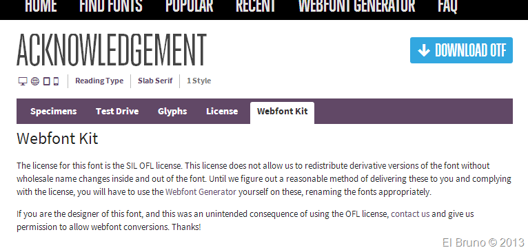 2. Cuando accedo al detalle de esta font, puedo ver en su modelo de licencia que la misma no permite descargala en otros formatos (Además de las cuestiones de distribución, uso, etc).