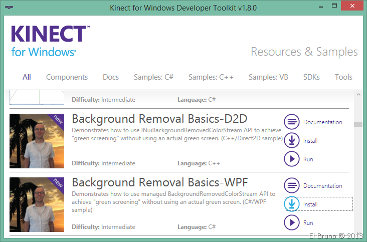 Para ver cómo funciona esta new feature, veamos el ejemplo “Background Removal Basis-WPF” incluido en el Kinect SDK Developer Toolkit.