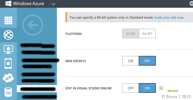 Lo primero es acceder a nuestra cuenta de AZURE, y seleccionar un Website. Dentro de la configuración del mismo, veremos una nueva opción llamada “EDIT IN VISUAL STUDIO ONLINE”