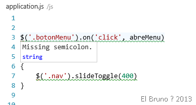 Por ejemplo, no hay semicolón … eso sí, JavaScript se come todo y sigue adelante ![]()