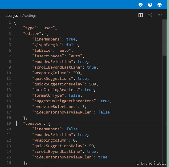 Pero bueno, el entorno de desarrollo tiene algunas cosas interesantes, por ejemplo, la sección de settings.