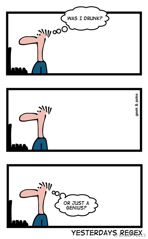 A mi también me ha pasado de encontrarme una expresión regular y pensar ¿que demonios estaba pensando cuando escribí esto?