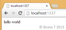 7. Ya tenemos nuestra app funcionando! Si navegamos al root de nuestro server, en el puerto 1337 (línea 12), veremos el tan clásico como inútil Hola Mundo