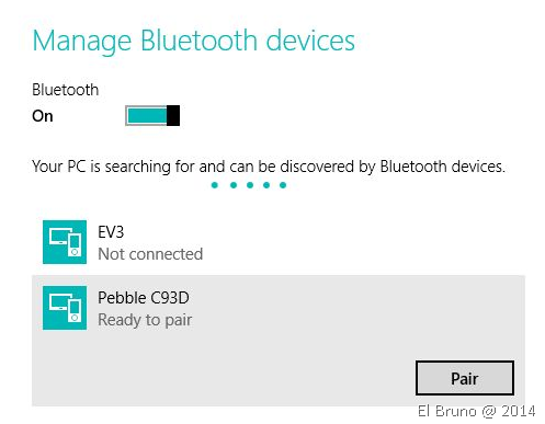 Asi que primero lo primero, accedemos a la lista de devices bluetooth, buscamos el Pebble y lo agregamos.