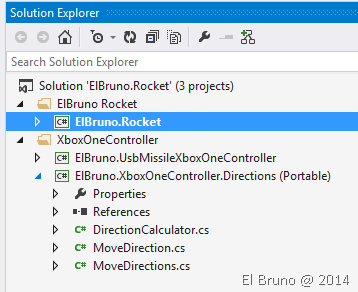 The complete solution includes 3 projects, 1 is responsible for controlling the Rocket Launcher, then the app WPF to coordinate signals of the remote control and the Lance missiles. Finally I have a PCL that is responsible for translating Int32 values from the command in command more basic type: up, down, left or right.
