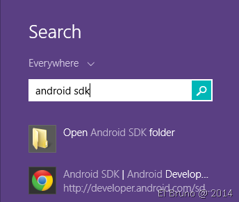 La búsqueda de Windows nos lleva rápidamente al directorio de Android SDK