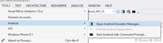 Desde el IDE lanzamos el Android Emulator Manager en la opción “Tools // Android // Open Android Emulator Manager …”